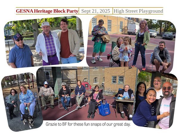 Thank you, Neighbor! GESNA neighbors enjoyed visiting with friends and meeting new residents at the GESNA Heritage Block Party in 2024, at the High Street Playground. People shared delicious nibbles, relaxed under the tall trees, and listened to the music of Dan Kupka and Brian Donnelly! Grazi to MDF, BF, and JCS, for capturing the day.